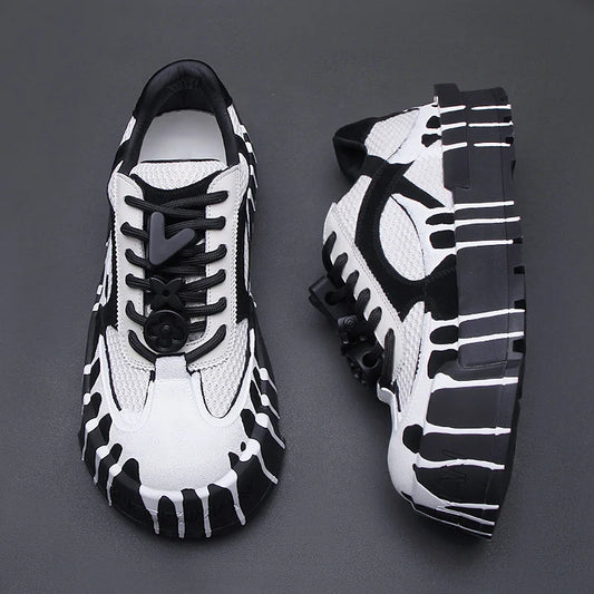The 2025 summer new fashion design thick-soled board shoes for men and black and white two-tone casual shoes for men