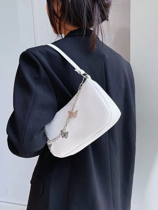 Stylish Butterfly Chain Shoulder Shopping Bags Women Small Pure Color Handbags Daily PU Leather Underarm Bags
