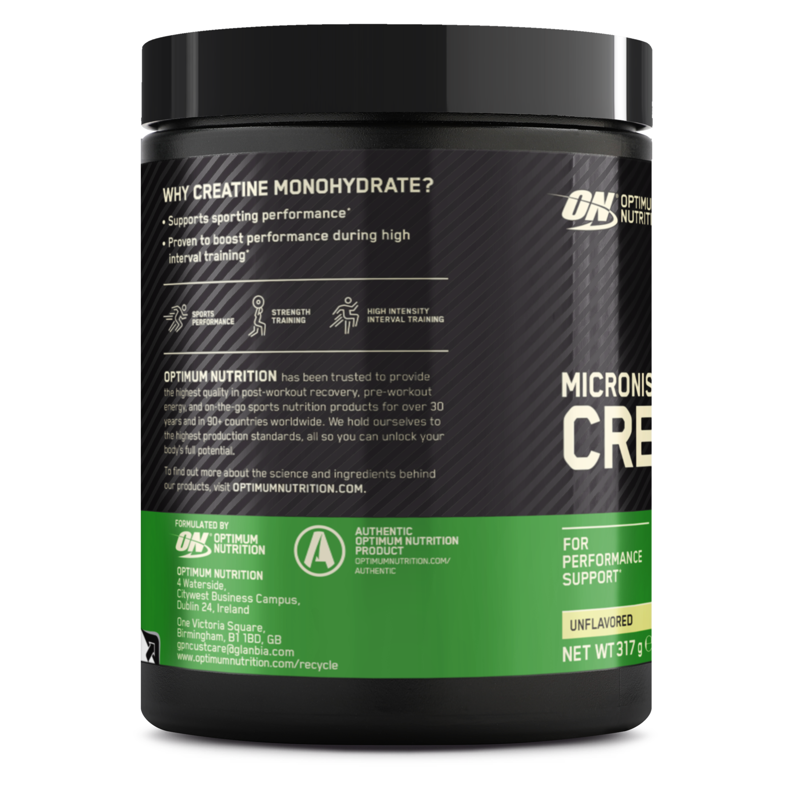 Creatine is proven to improve performance during high intensity training. From the World's No. 1 Sports Nutrition brand, each serving supplies a full 3.4 g of Creatine Monohydrate to increase muscle power in successive bursts of short-term, high intensity, repeated exercise. This includes sprinting, power lifting, gym-based exercise and sport specific tasks in rugby, football and basketball