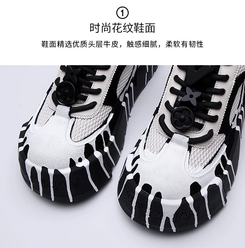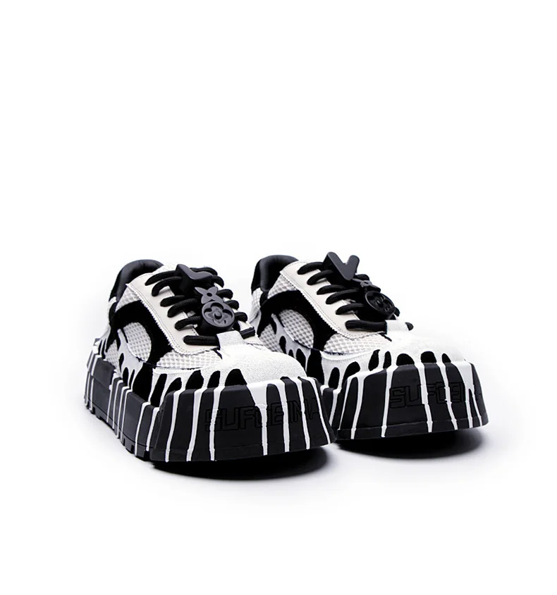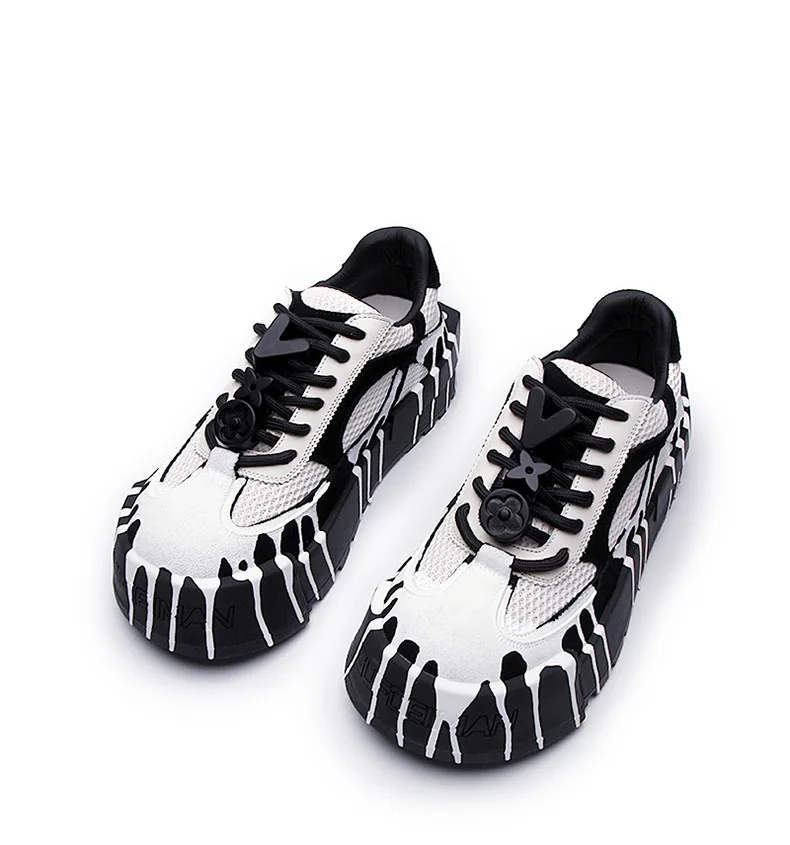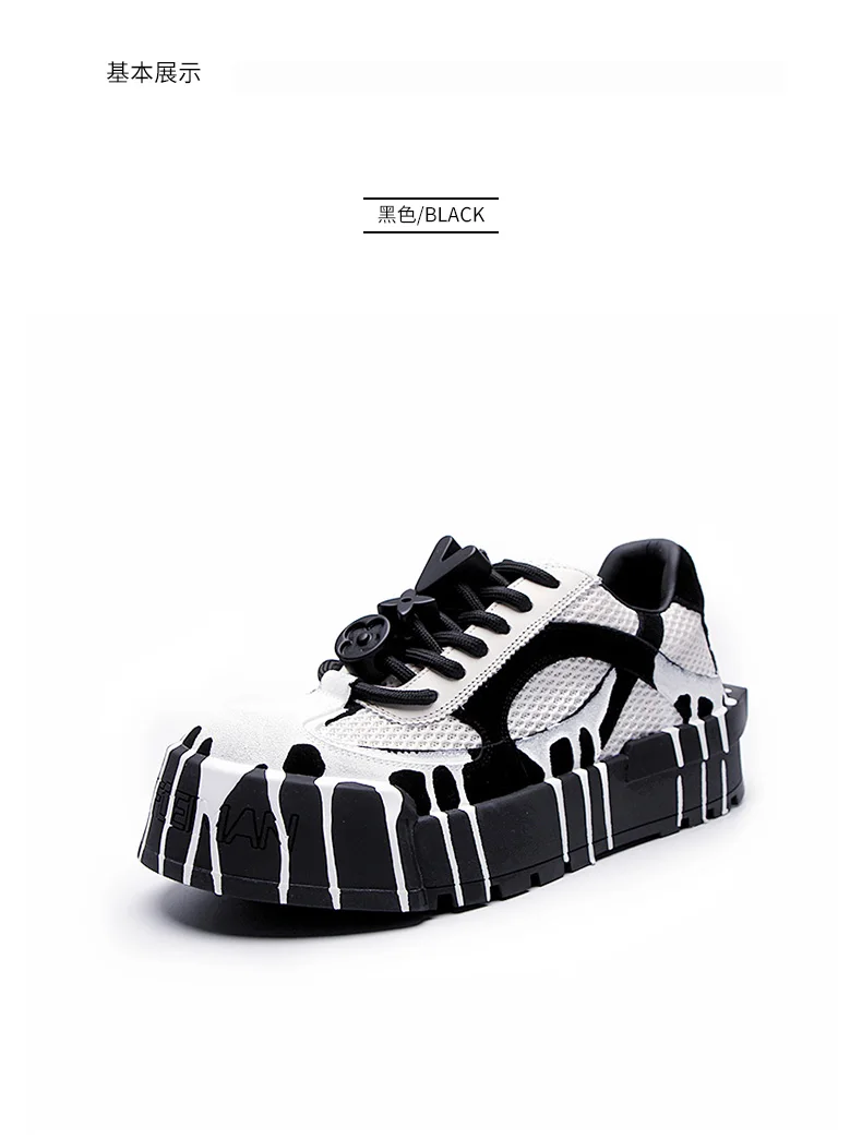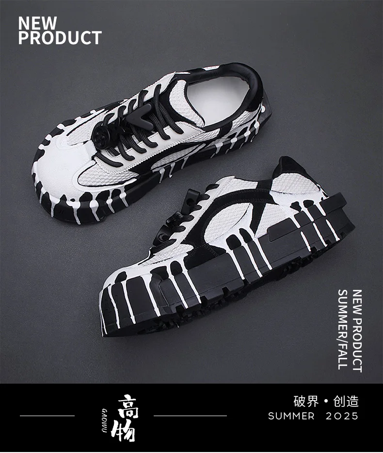 The 2025 summer new fashion design thick-soled board shoes for men and black and white two-tone casual shoes for men