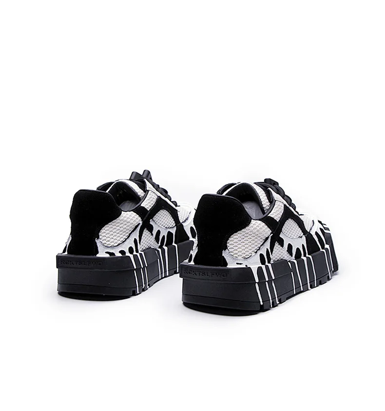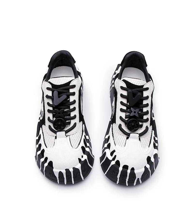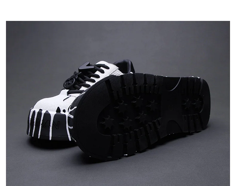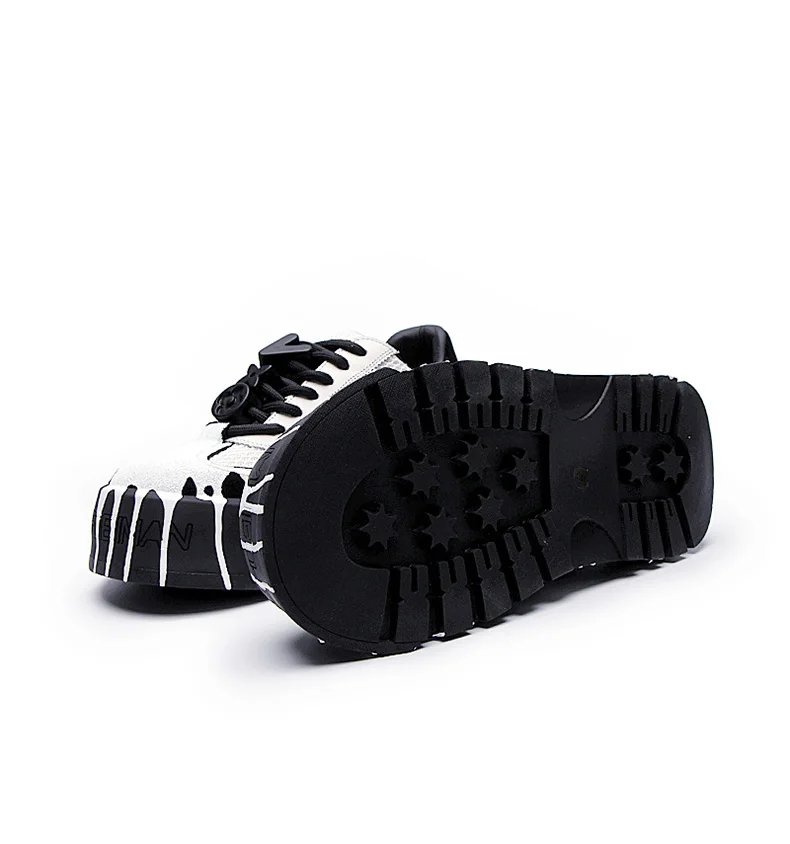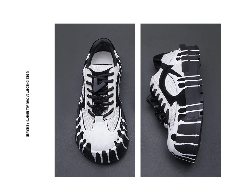 The 2025 summer new fashion design thick-soled board shoes for men and black and white two-tone casual shoes for men